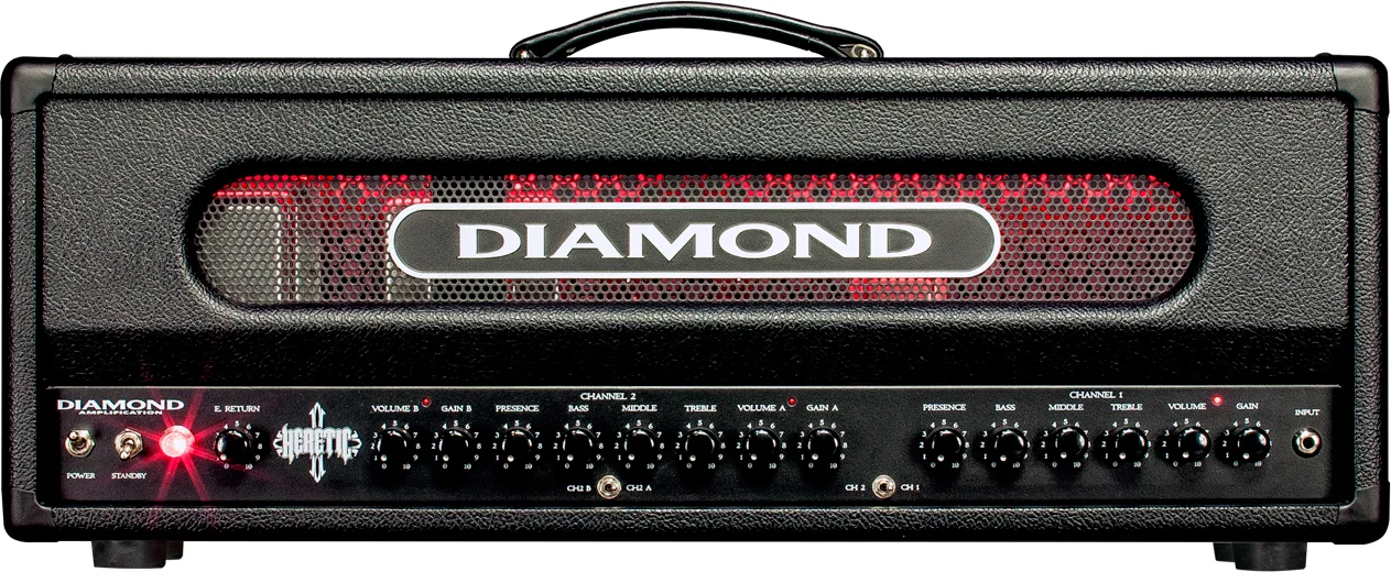 Like all current and future Diamond Amplification products, the Heretic features the highest quality components and construction. Every component was selected and tested for this head. The Heretic uses 6 12AX7 preamp tubes and 4 EL34s for its power stage. Each part was personally spec'd and tested by us to ensure maximum performance and reliability, from the transformers to the switches and knobs.
